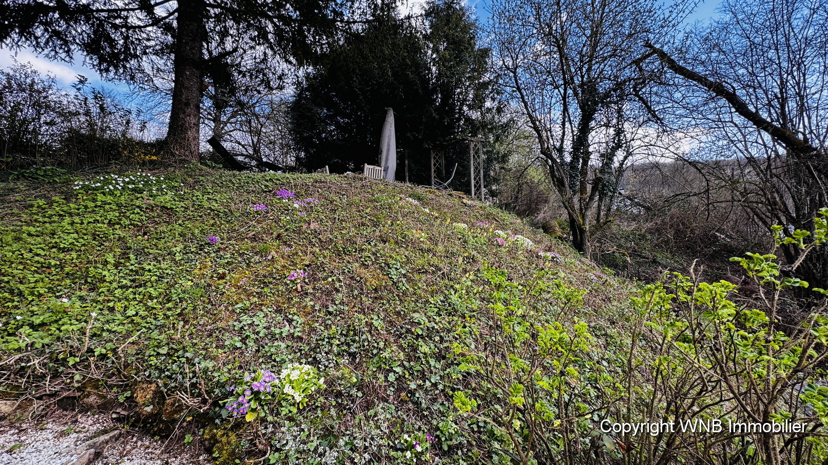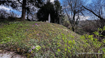 vol lentebloemen, waar de ingang is naar nog twee ruimtes die geschikt