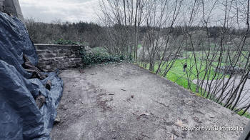 fundament en dikke, natuurstenen muren dragen een woning met alle