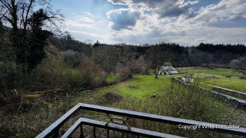 bossen, weiland en de rivier de Côney met oude watermolen.