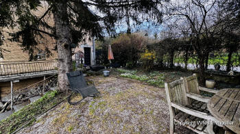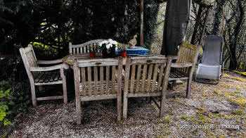 bestaat uit een ruim terras en een klein grasveldje, maar het wijde